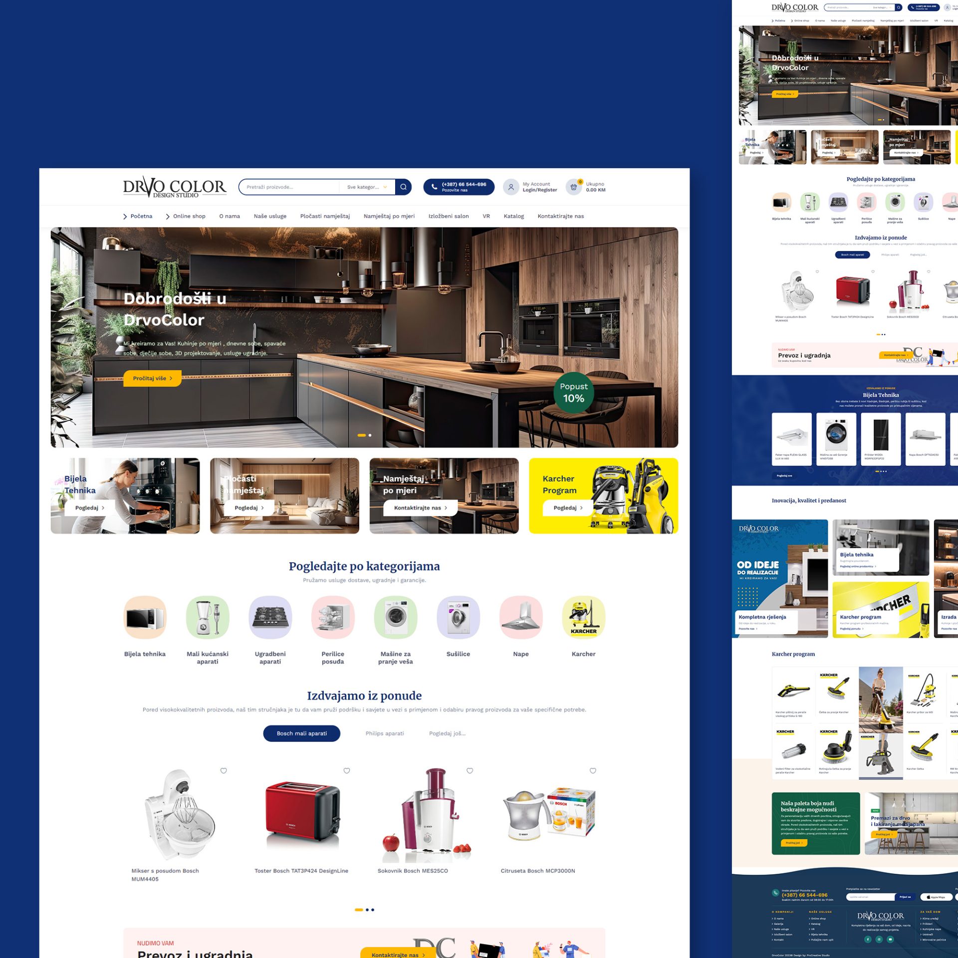 S uzbuđenjem vam predstavljamo rezultat naše najnovije suradnje – web stranicu kompanije “Drvo Color.” Kao “ProCreative Studio,” s posebnim entuzijazmom radili smo na projektu izrade web stranice koja će prikazati eleganciju pločastog namještaja i širok izbor kućanske tehnike koji nudi “Drvo Color.”