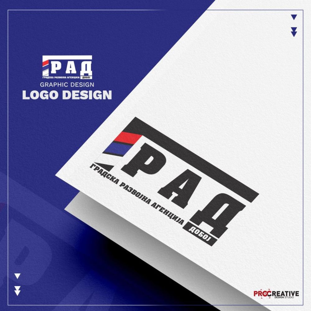 Izraditi vizuelni identitet (logotip, paletu boja) za "Gradska Razvojna Agencija Doboj"